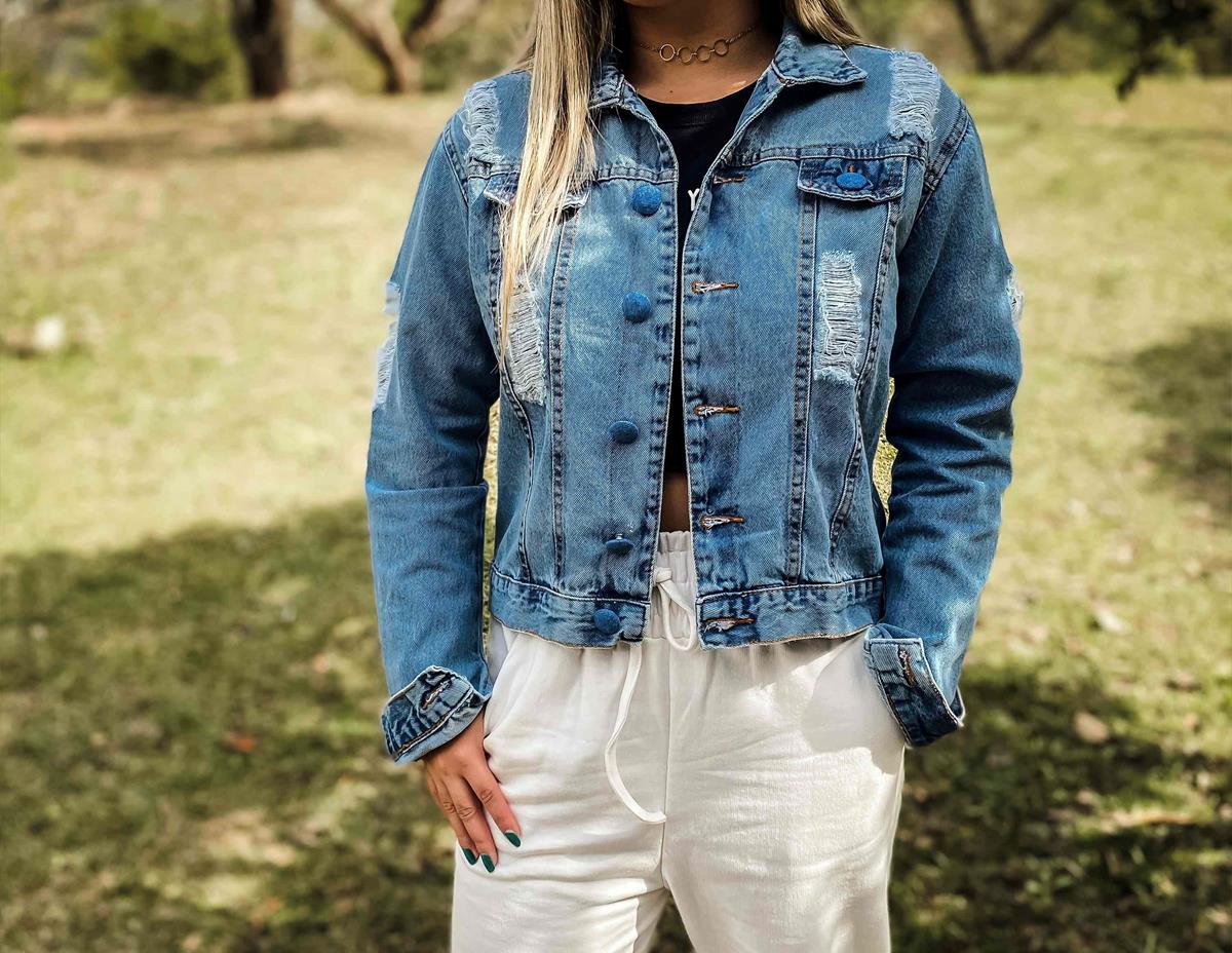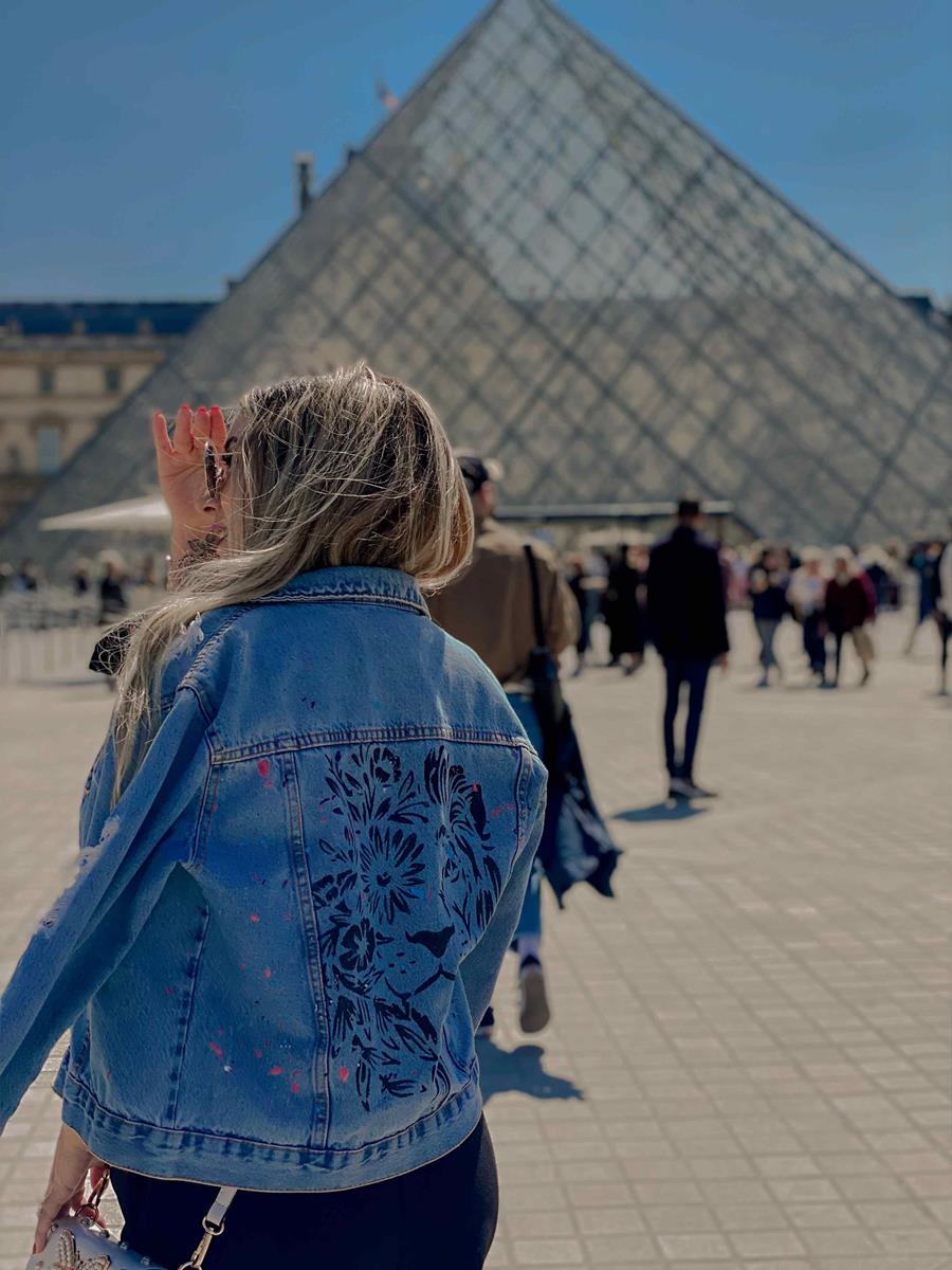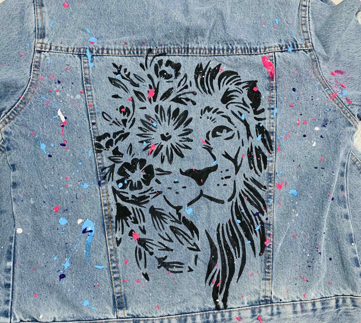 Jaqueta Jeans Exclusiva - PEÇA ÚNICA, com arte Leão Aquarela feito a mão.